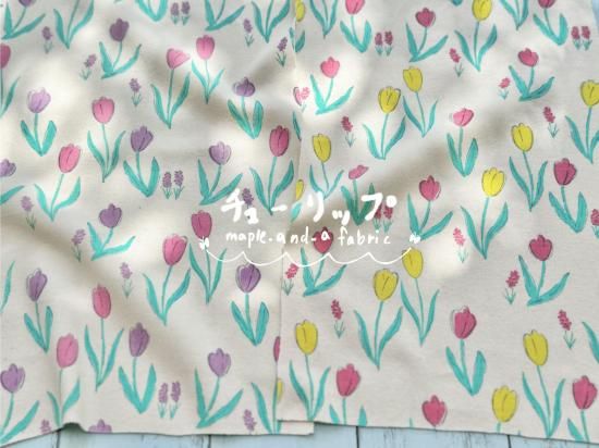 周りまで華やかになるような、カラフルで優しいチューリップ柄を描きました